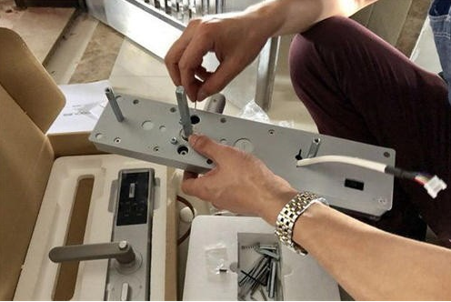 1、.指纹锁检测一切正常后,将隔板、扣锁盒安裝在门边框上,螺钉固定不动,随后开展放料口,查验是不是畅顺自如友家。(留意这时最好是在门內外必须许多人,防止检测时门打不开)